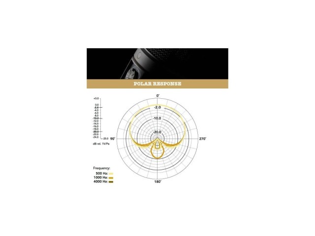 Štúdiový mikrofón, 1" s dvojitou membránou, kondenzátorový typ, plynulo nastaviteľná charakteristika od všesmerovej cez kardioidnú až po osmičkovú