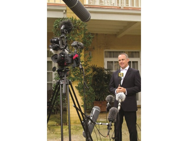 Mikrofón sa dodáva s odnímateľným štítkom, na ktorom môže byť viditeľne umiestnené logo rozhlasovej alebo televíznej stanice.