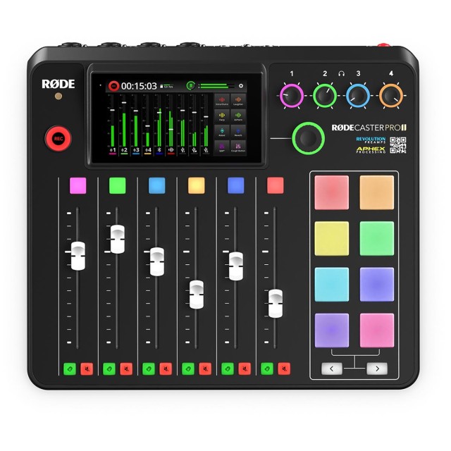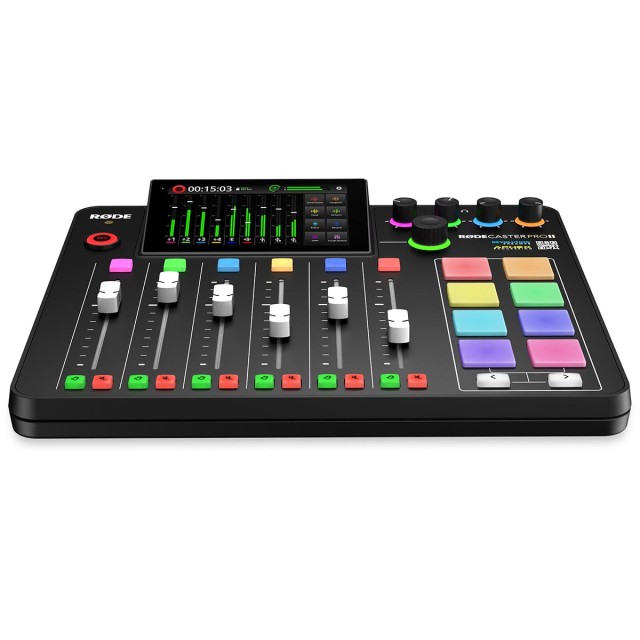 RodeCaster Pro II je mixážny pult navrhnutý špeciálne pre podcasterov, streamerov a hudobníkov, ktorí vyžadujú kvalitné predzosilňovače v kombinácii s modernými možnosťami pripojenia. Je vybavený štyrmi kombo konektormi Neutrik na pripojenie mikrofónov a nástrojov, špičkovými predzosilňovačmi "Revolution Preamp" s veľmi nízkym vlastným šumom (-131,5 dBV), zosilnením 76 dB a fantómovým napájaním a technológiami Aphex na kvalitné spracovanie zvuku. Konzola ponúka celkovo deväť kanálov - vrátane šiestich profesionálnych šablí a troch virtuálnych - s individuálnym priradením pre úplnú konfiguráciu mixu. Osem tlačidiel (padov) je plne programovateľných, napr. na spúšťanie efektov, posielanie príkazov MIDI atď.