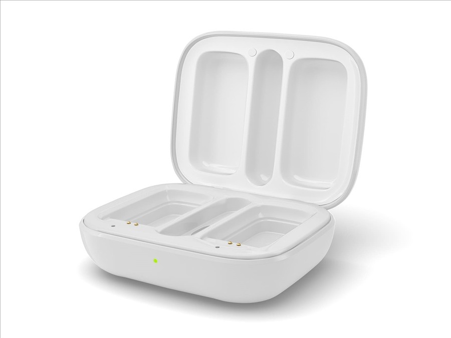 Charge Caseje ochranné puzdro na prenášanie vysielačov aj prijímača. Funguje aj ako nabíjací dok, ktorý zabezpečuje dobíjanie vysielačov počas prepravy alebo prestávok v natáčaní. Môže byť napájaný pomocou priloženého kábla USB-C alebo môžete použiť internú batériu, ktorá dokáže dvakrát úplne nabiť všetky komponenty súpravy.
