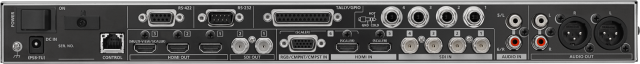 Videoefekty: PGM-PST, DISSOLVE, MATRIX; CUT, MIX, WIPE; PinP, SPLIT, DSK; Flip, Freeze, Capture, Test Pattern