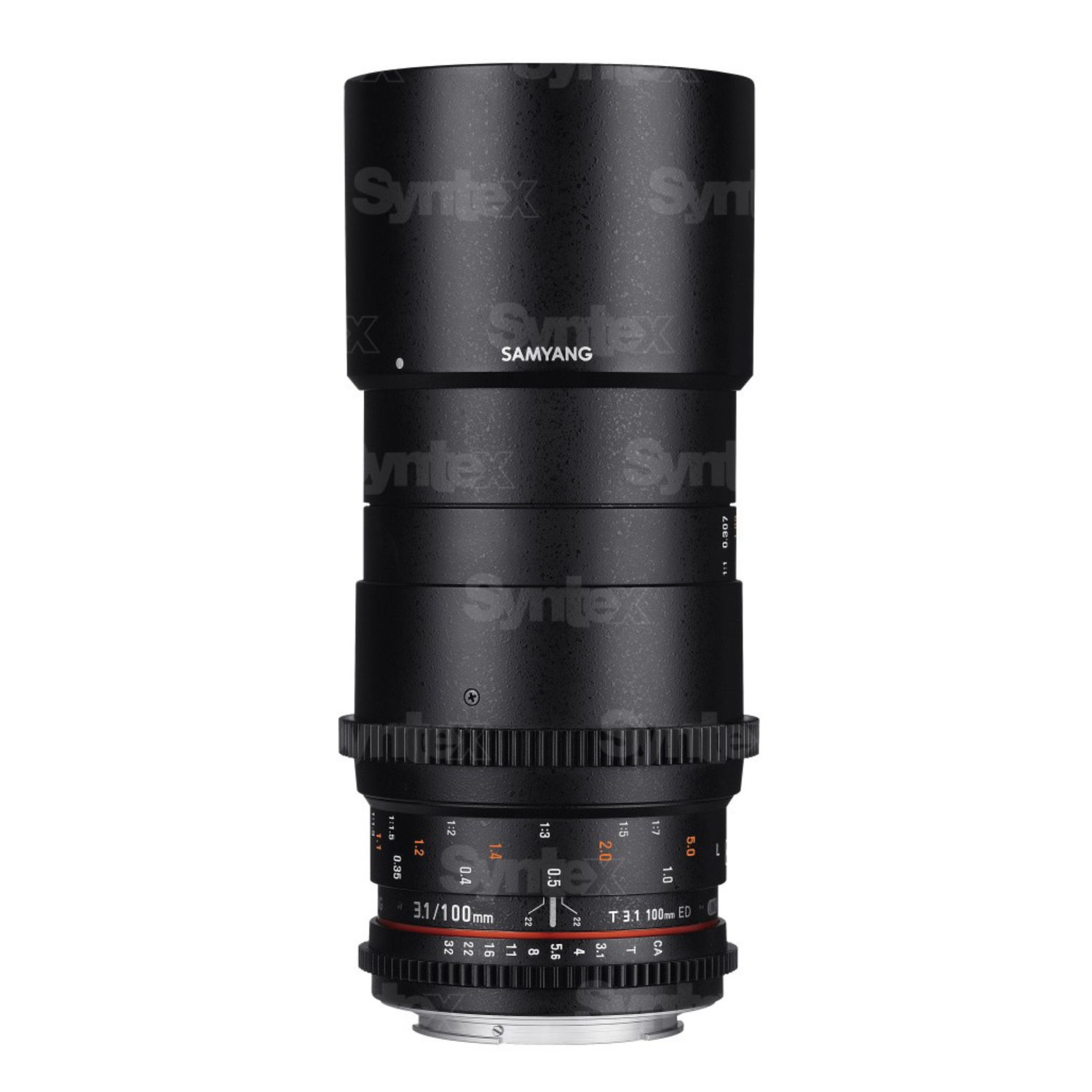 Samyang 100mm T3.1 ED UMC MACRO je jedným z objektívov tvoriaci Samyang VDSLR Kit. Tieto objektívy vytvára rovnakú farbu obrazu a majú jednotnú polohu clony a ostriaceho prstenca s cieľom zaistiť maximálne pohodlie pri natáčaní.