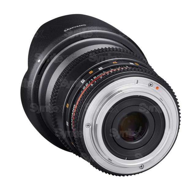 Samyang 16mm T2.2 VDSLR ED AS UMC CS II je určený na tvorbu profesionálnych filmov a videí. Pomocou odnímateľného clonového krúžku môžete plynulo a ticho meniť clonu.Stupnice vzdialeností a hodnoty "T" sú vyznačené na oboch stranách objektívu pre jednoduchú manipuláciu