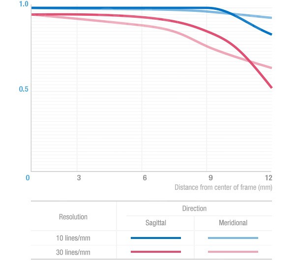 Asférické členy znižujú farebnú aberáciu, čím zabezpečujú dokonalú kvalitu obrazu a vysoký kontrast stredu a rohu obrazu aj pri úplne otvorenej clone