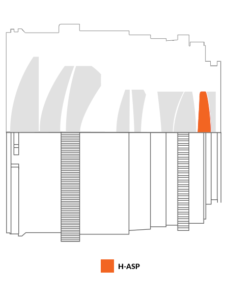 | Optická konštrukcia | 9 ELEMENTOV V 7 SKUPINÁCH (1 hybridný ASFÉRICKÝ OBJEKTÍV) | |||||||||