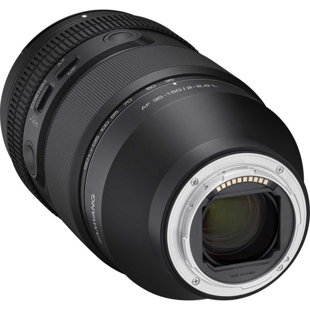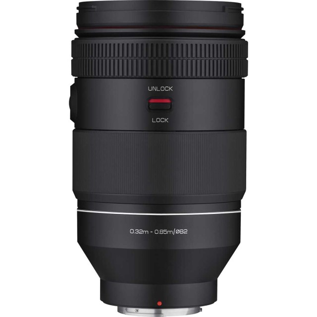 Samyang AF 35-150 mm f/2-2,8 L je ľahký univerzálny objektív so zoomom, ktorý má všestranný rozsah (pokrýva päť hlavných ohniskových vzdialeností 35/50/85/135/150), svetelnosť f/2-2,8, robustnú konštrukciu, vynikajúce optické rozlíšenie, rýchle a presné automatické zaostrovanie a pohodlné ovládanie. Použitie kovového tubusu zlepšilo kvalitu konštrukcie a zvýšilo odolnosť objektívu. Prepínač blokovania zoomu pomáha používateľom udržiavať objektív nastavený v najkratšej 35 mm polohe, vďaka čomu je jeho prenášanie bezpečnejšie. Vďaka najnovšej optickej konštrukcii s použitím špeciálnych šošoviek pre 12 z 21 prvkov (v 18 skupinách) vykazuje tento objektív vynikajúci optický výkon v celom rozsahu zoomu od širokouhlého záberu až po teleobjektív na modeloch s bajonetom L. Okrem toho sa používa technológia "UMC (Ultra Multi-Coating)", ktorá minimalizuje odlesky a duchy a pomáha vytvárať prirodzené a jasné snímky, a objektív je tiež utesnený proti poveternostným vplyvom. Lineárny krokový motor poskytuje vysokú odozvu a presnosť pri fotografovaní a snímaní videa a je vynikajúci na sledovanie rýchlo sa pohybujúcich objektov. Objektív je tiež výborne optimalizovaný na snímanie videa. Keď v režime AF nastavíte používateľský prepínač na režim MODE 2, zaostrovací krúžok pracuje s funkciou nastavenia clony. Prepnutím na režim MODE 3 v režime MF sa aktivuje jedinečná funkcia videa s názvom "Dolly Shot". Na bočnej strane sa nachádzajú dve tlačidlá podržania zaostrenia, ktoré možno použiť ako tlačidlá podržania zaostrenia v režime AF a ako tlačidlá uloženia zaostrenia v režime MF.