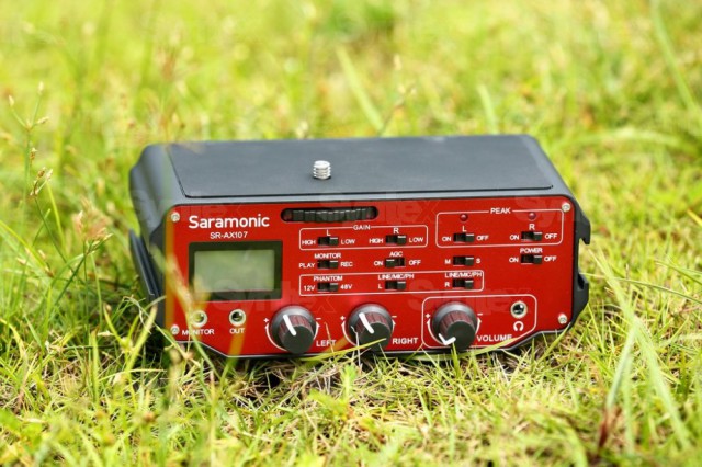 Sortiment dvojkanálových mixážnych rozhraní/konzol Saramonic pre DSLR/DSLM a malé fotoaparáty zahŕňa niekoľko modelov, od veľmi jednoduchých pasívnych SR-AX100 a SR-AX101 až po sofistikované zariadenia SR-AX107 a SR-PAX2 s aktívnou elektronikou ponúkajúcou fantómové napájanie, predzosilňovače so ziskom 20 dB a merače úrovne. Zariadenia sa pripájajú do mikrofónových vstupov TRS fotoaparátov/kamkordérov a montujú sa pomocou pätice pre blesk alebo statívovej skrutky