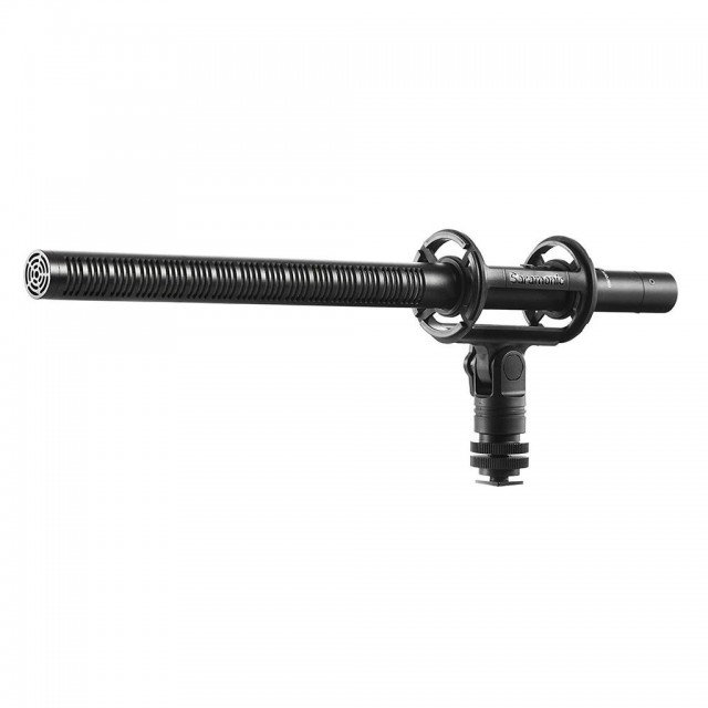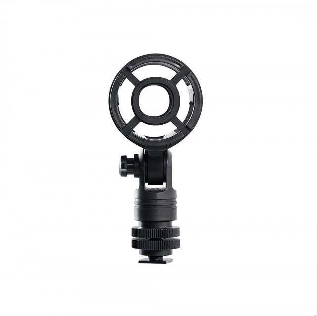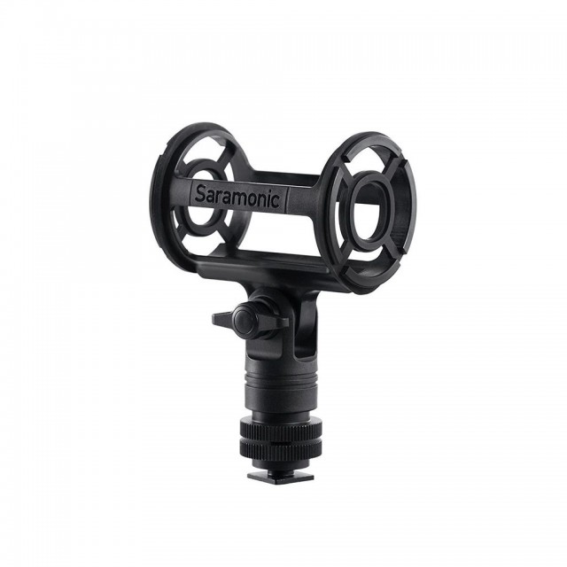SR-SMC2 Shotgun Microphone Shockmount with Cold Shoe Mount for Cameras od spoločnosti Saramonic je vybavený štvorbodovým zavesením určeným na mikrofóny typu shotgun s priemerom 19 až 25 mm. Možno ho použiť na bezpečné pripevnenie mikrofónu k ramenu, videokamere, mikrofónovému stojanu alebo statívu fotoaparátu na video a audio aplikácie.