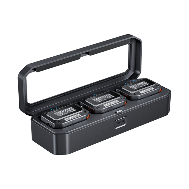 Konfigurácia s tromi kamerami je na pľaci štandardom. TC-NEO ponúka prvú nabíjací kit svojho druhu, ktorý pojme a napája 3 jednotky, čím zefektívňuje váš pracovný postup s viacerými kamerami. Každá jednotka funguje až 22 hodín* na jedno nabitie alebo až 48 hodín* s puzdrom. Vstup USB-C zabezpečuje napájanie počas celého natáčania. A tu je malý bonus: Pri nabíjaní podržte bočné tlačidlo stlačené 1,5 sekundy a všetky tri displeje sa premenia na dokonale synchronizované digitálne hodiny. Pridajte trochu zábavy do náročného pracovného postupu.
