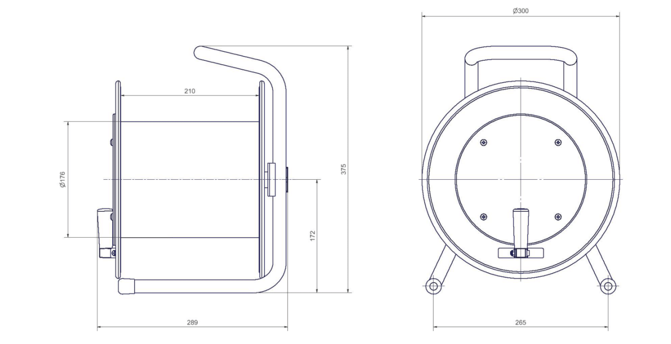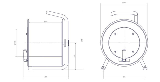 S priemerom kotúča 300 mm, vnútornou šírkou 210 mm a priemerom jadra 176 mm ponúka tento káblový bubon dostatok priestoru na uloženie káblov pri zachovaní kompaktných rozmerov. Je ľahký, ale pevný, a umožňuje efektívnu manipuláciu a organizáciu káblov, lán alebo hadíc.