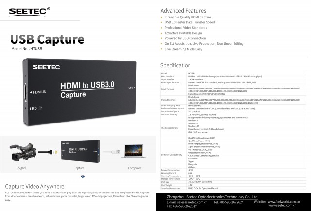Zariadenie USB 3.0 na nahrávanie SD/HD videa zo zdrojov HDMI (vstup HDMI > výstup USB 3.0 UVC/UAC, kompatibilný s USB 2.0). Ideálne zariadenie napr. na nahrávanie videí z herných konzol, na živé streamovanie (napr. pomocou Flash Media Encoder, Wirecast, Livestream Procaster a Resolume Avenue 4), videokonferencie atď. Kompatibilný so systémami Windows 7+, Linux (2.6.38+) a macOS 10.8+.