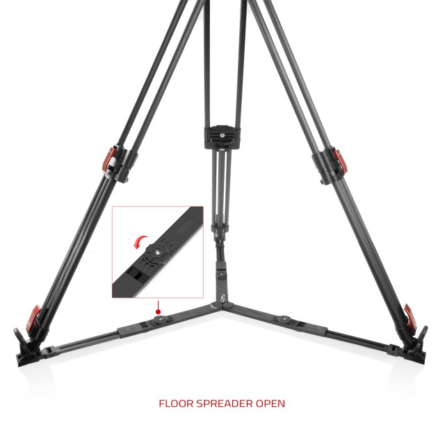 Dvojstupňové nohy z uhlíkových vlákien so 100 mm miskou sú navrhnuté tak, aby privítali 100 mm statívové fluidné hlavy (HD15), a majú veľmi pevné hliníkové svorky na zaistenie statívu v správnej výške. Nohy sú pevné, stabilné a odolné voči korózii, pričom sú ľahké a ľahko sa používajú. Systém má veľkorysý výškový rozsah od 16 1/8" do 58 1/2" (41 až 148,5 cm) na zábery z nízkych a vysokých uhlov pri použití priloženého podlahového rozperného systému. Spodná časť nôh má po odstránení rozperky hliníkové hroty, ktoré umožňujú snímanie na zľadovatenom alebo klzkom povrchu. Nohy sa dajú nezávisle nastaviť pri streľbe na nerovnom teréne. (skalnaté hory). Nohy sú vybavené 100 mm miskovou základňou na rýchle vyrovnanie hlavy. Súčasťou balenia je polstrovaná prepravná taška na bezpečnú prepravu.