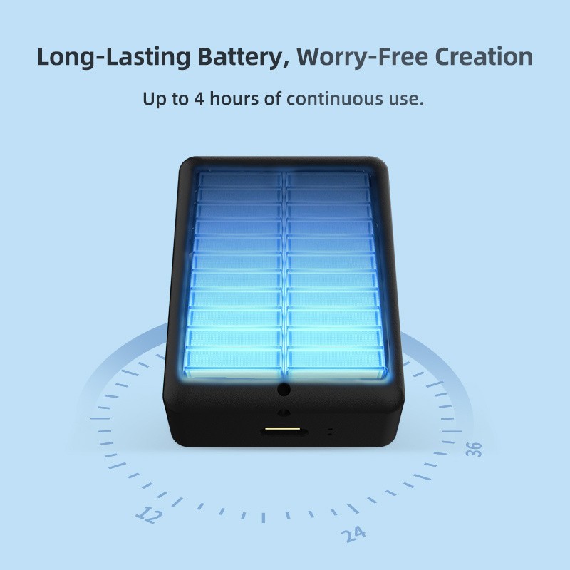 Ovládanie spúšte cez Bluetooth umožňuje diaľkové ovládanie iPhone až do vzdialenosti 30 metrov a batéria s kapacitou 1200 mAh poskytuje 4 hodiny nepretržitého používania. Magnetické upevnenie uľahčuje pripevnenie na statívy, držiaky alebo iné kreatívne zariadenia. Nízka latencia 60 ms zaisťuje plynulé monitorovanie videa.