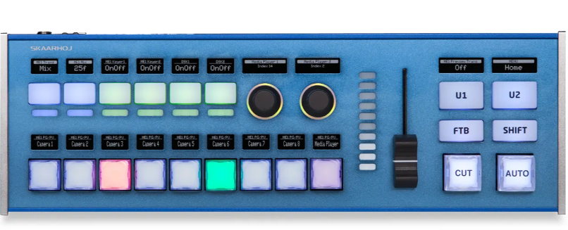 SKAARHOJ Live Fly s tlačidlami NKK je profesionálny ovládací panel strednej veľkosti určený na prepínanie videa, ovládanie PTZ a pracovné postupy pri živých produkciách, ktorý ponúka programovateľné tlačidlá NKK, OLED displeje a flexibilnú integráciu s ATEM, vMix, TriCaster a ďalšími zariadeniami.