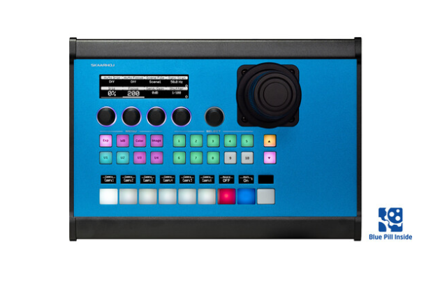 Ovládací panel je vybavený štyrmi podsvietenými otočnými gombíkmi, desiatimi tlačidlami na výber kamery a viacerými programovateľnými tlačidlami s RGB podsvietením pre prednastavenia, prepínanie a navigáciu v menu. Vstavaný displej poskytuje jasnú spätnú väzbu systému a prístup k menu, vďaka čomu je konfigurácia a ovládanie intuitívne aj v rýchlo sa meniacich prostrediach.