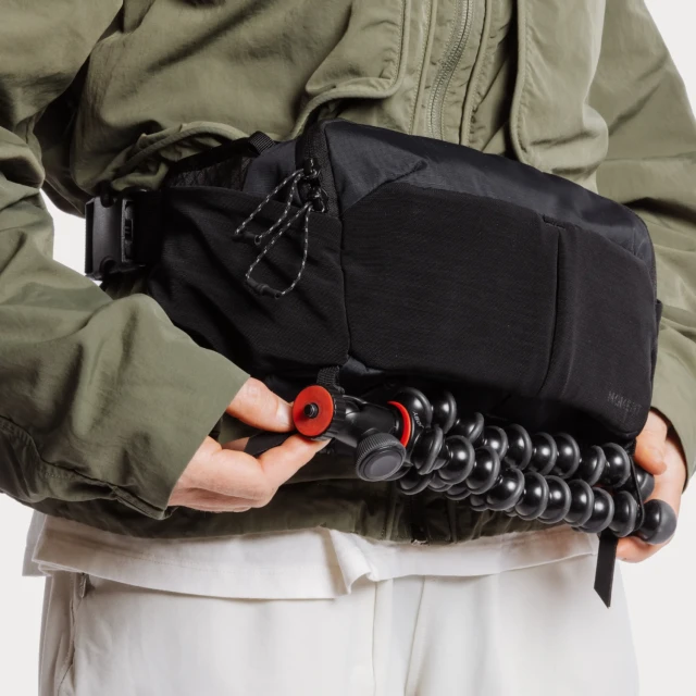 Hlavný priestor pojme kompletný bezzrkadlový fotoaparát s malým objektívom a polstrovaná časť obsahuje vrecká na príslušenstvo a každodenné predmety. Vďaka ultralahkým materiálom, odolnosti voči poveternostným vplyvom a rýchlo nastaviteľným upevneniam sa ľahko prispôsobí akejkoľvek situácii.