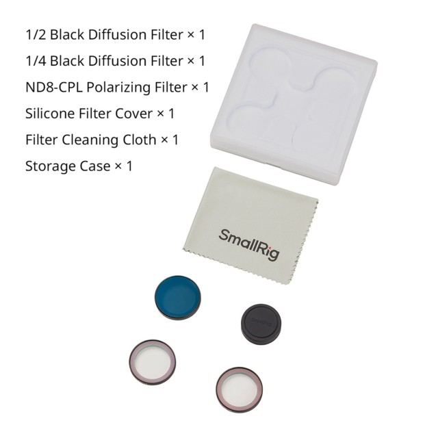 Súprava difúznych filtrov SmallRig 1/2 Black Diffusion & 1/4 Black Diffusion & ND8-CPL Polarizing Filter Kit pre DJI Osmo Nano 5789 je špeciálne navrhnutá pre DJI Osmo Nano. Táto súprava obsahuje difúzny filter 1/2 black, difúzny filter 1/4 black a polarizačný filter ND8-CPL.