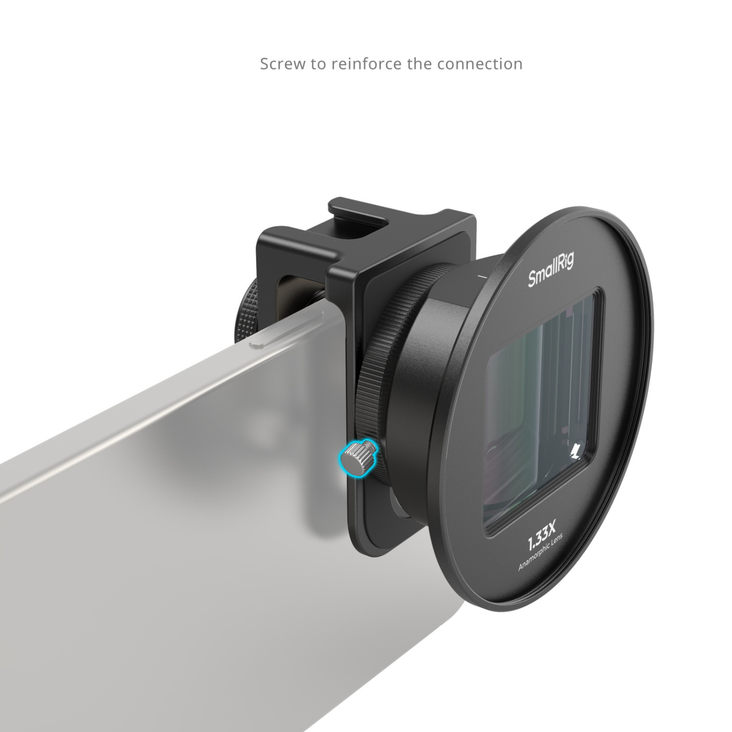 SmallRig 1,33x anamorfný objektív pre mobilný telefón (T-mount) 4590 je navrhnutý na zachytávanie filmových snímok so širokým pomerom strán 2,4:1. Ponúka o 33 % väčšiu horizontálnu šírku záberu ako štandardné formáty 16:9 bez kompresie alebo orezávania, takže môžete zažiť filmový širokouhlý vizuálny efekt podobný filmom. Konštrukcia objektívu navyše vytvára výrazný modrý anamorfný efekt odleskov pri snímaní pod silnými zdrojmi svetla. Vďaka štandardnému T-mount je tento objektív kompatibilný s rôznym príslušenstvom, ako sú klietky, puzdrá na telefóny alebo klipy na objektívy s T-mount, čo zaručuje univerzálnosť vo väčšine smartfónov a tabletov pre jednoduchú inštaláciu.