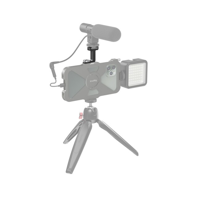 Adaptér SmallRig so závitom 1/4"-20 na Cold Shoe zásuvku pre klietku na mobilný telefón BUC2637 je určený pre klietky Pro Mobile, ako sú SmallRig Pro Mobile Cage pre Samsung S10+ CPS2441, SmallRig Pro Mobile Cage pre iPhone 11 Pro CPA2471, SmallRig Standard Universal Mobile Phone Cage CPU2391 atď., a poskytuje dodatočnú studenú zásuvku na pripojenie mikrofónu alebo LED svetla. Vďaka polohovaciemu dizajnu ho možno bez nežiaduceho otáčania upevniť na klietku pomocou jedinej skrutky 1/4"-20.Zmena polohy pripojeného mikrofónu pomôže zabrániť tomu, aby mikrofón prekážal pri používaní superširokouhlého objektívu počas fotografovania.