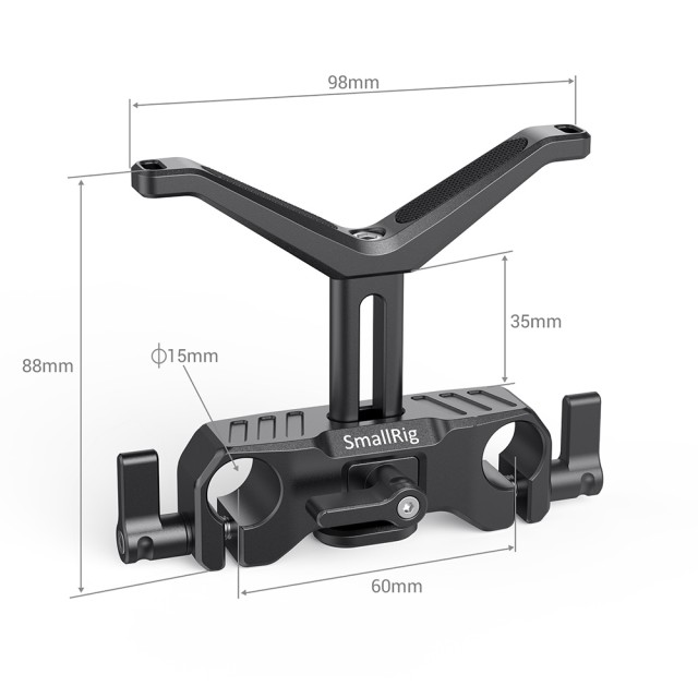 Univerzálny držiak objektívu SmallRig 15 mm LWS BSL2680 je určený na odstránenie záťaže z držiaka objektívu fotoaparátu, keď je fotoaparát namontovaný na samostatne dostupných 15 mm tyčiach LWS. Podpera objektívu ponúka 34,5 mm vertikálne nastavenie, ktoré vyhovuje väčšine objektívov. Stredový stĺpik sa pripevňuje k podpere v tvare písmena Y, ktorá má na každej strane otvory na popruhy na dodatočné upevnenie. Výšku možno nastaviť pomocou rýchloupínacieho gombíka bez použitia náradia. Podpera objektívu je kompatibilná s objektívmi s priemerom do 150 mm.