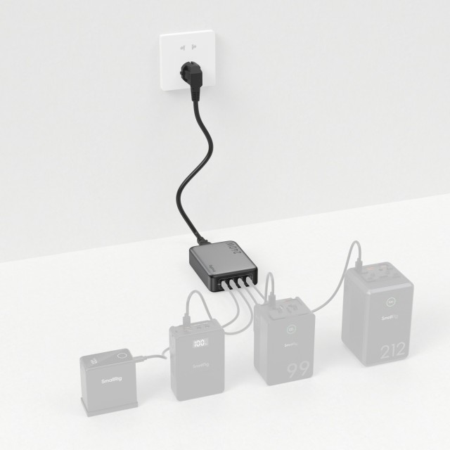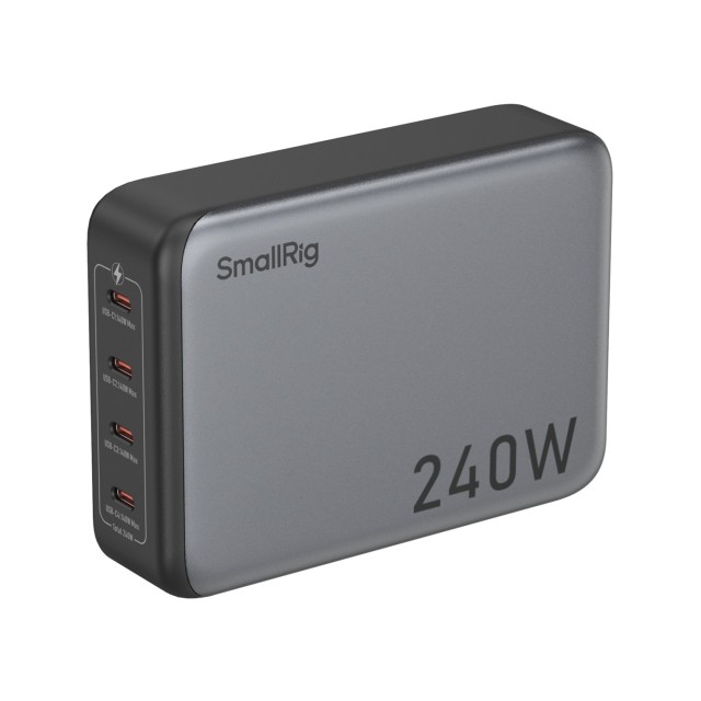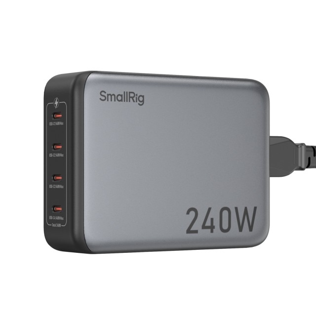 SmallRig 240W 4-portový napájací adaptér PD (štandard EÚ) 4752 je vysoko účinné a všestranné nabíjacie zariadenie s celkovým výstupným výkonom 240 W. Táto nabíjačka je vybavená štyrmi portami USB-C a podporuje súčasné nabíjanie viacerých zariadení, ako sú batérie s V-koncovkou, batérie NP-F, nabíjateľné batérie do fotoaparátov, smartfóny, počítače, fotoaparáty a ďalšie, vďaka čomu je vhodná pre rôzne scenáre použitia. Všetky porty podporujú rýchle nabíjanie, pričom každý port podporuje výstup až 140 W (max.) prostredníctvom PD3.1, čo poskytuje silnú podporu pre zariadenia s vysokým výkonom a výrazne zvyšuje účinnosť nabíjania. Každý výstupný port je vybavený ochranou proti skratu a nadprúdu, ktorá zabezpečuje bezpečné používanie. Okrem toho je nabíjačka vďaka kompaktným rozmerom vhodná na cestovanie a každodenné používanie.