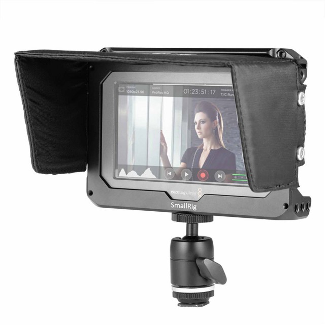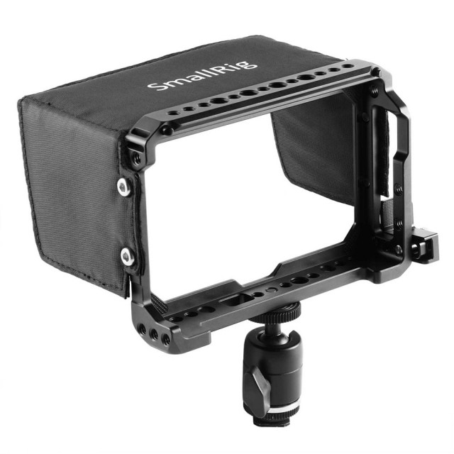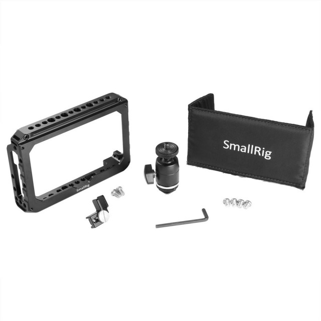 SMALLRIG Monitor Cage Accessory Kit 1981 je 5'' klietka na monitor so slnečnou clonou. Ide o skvelý spôsob ochrany monitora Blackmagic Video Assist. Klietka je vyrobená z CNC obrábaného hliníka, je pomerne ľahká a pevná a stále budete mať prístup ku všetkým funkciám monitora. Obsahuje množstvo otvorov so závitom 1/4"-20 a 3/8"-16 na rôzne možnosti upevnenia. Integrovaná a proti skrúteniu namontovaná lišta NATO na hornej strane na priame pripevnenie príslušenstva podľa štandardu NATO. Dodávaná svorka HDMI na ochranu portu HDMI fotoaparátu. Okrem toho je pridanie slnečnej clony ideálne na zabránenie priamemu slnečnému žiareniu pre dobrú viditeľnosť obrazu na obrazovke. Okrem toho ohľaduplne ponúkame guľovú hlavu SmallRig 1875 na podporu monitora na jednoduchú montáž.