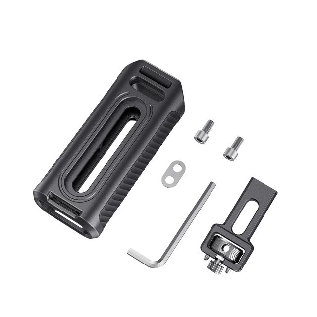 Hliníková polohovacia bočná rukoväť SmallRig Arri HSS2426 je navrhnutá tak, aby kameramanom poskytovala pohodlné snímanie z ruky. Pomocou zabudovaného šesťhranu na spodnej strane možno rukoväť nastaviť nahor a nadol podľa vašich potrieb. Ak chcete rukoväť použiť na druhej strane klietky, pomocou šesťhranu odoberte spojovaciu kovovú časť rukoväte a zmeňte smer. Rukoväť je možné namontovať na klietky fotoaparátov s lokalizačnými otvormi Arri na boku. Dodáva sa s jednou pätkou a tri otvory so závitom 1/4"-20 umožňujú montáž príslušenstva. Váži len 226 g a má hliníkové telo s protišmykovým silikónovým gélovým poťahom, ktorý poskytuje pohodlné a ľahké snímanie z ruky. Túto rukoväť je možné používať aj s popruhom na ruku pre väčšiu bezpečnosť.