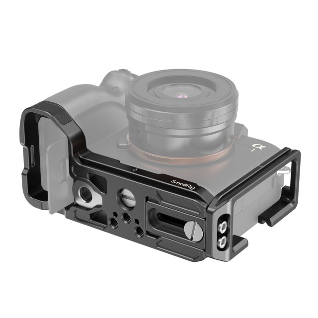 Držiak SmallRig L pre Sony A1&A7S III&A7R IV&A9 II 3207 je špeciálne navrhnutý na rýchle prepínanie medzi vertikálnym a horizontálnym snímaním a na lepší zážitok z držania. Zamyká fotoaparát pomocou skrutky 1/4"-20 na spodnej strane a je vybavený gumovými podložkami na základnej doske, ktoré zabraňujú poškriabaniu a skrúteniu. Základná doska aj bočná doska majú štandardy Arca-Swiss so stredovými značkami. Bočnú dosku možno vysunúť doľava, ak je potrebný väčší priestor na pripevnenie alebo uvoľnenie kábla, a možno ju posunúť dopredu, aby bolo možné využiť flip screen.