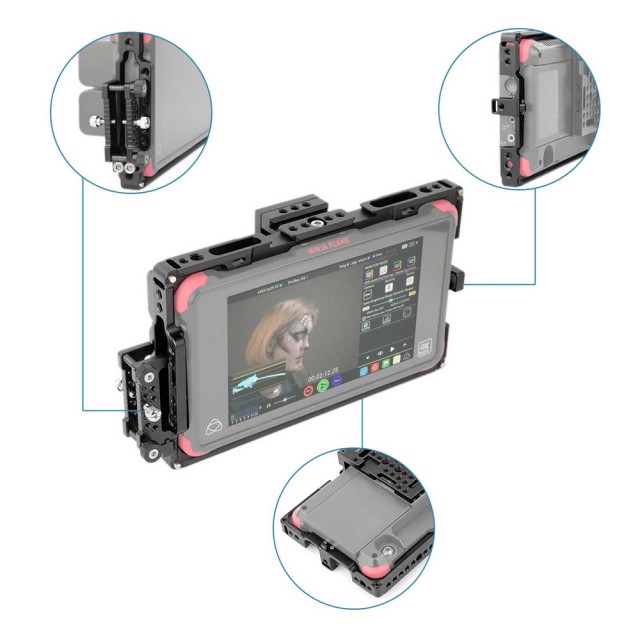 Aby sa zmiernili starosti s teplom, ktoré vzniká pri pripájaní k monitoru, zadná časť klietky pomôže monitoru odvádzať teplo. Je tiež vybavená svorkami HDMI na upevnenie kábla HDMI pomocou skrutiek a otvory so závitom 1/4" a 3/8" sú prístupné pre magické ramená. Okrem toho obsahuje zámok na uchytenie SSD, ktorý zabraňuje pádu SSD pri odpojení. Okrem toho sú pre pohodlie navrhnuté otvory na ramenný popruh.