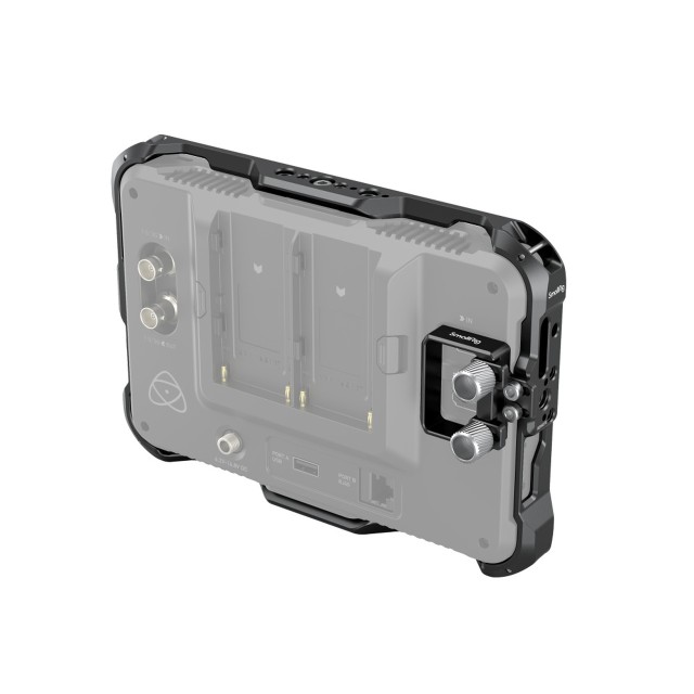 SmallRig Atomos Shinobi 7 Cage (Kit) 3456 je kompletná klietka z hliníkovej zliatiny vybavená rôznymi montážnymi bodmi pre príslušenstvo. Dodáva sa s lištou NATO na hornej a spodnej strane, otvormi so závitom 1/4'-20, 3/8'-16 na rýchle uvoľnenie a stabilné upevnenie magického ramena a držiaka monitora (ID: 2116, 2071, 2028, 2385, 2347) a vyhovujúcou základnou doskou (ID: 1598, 3204, 2107) na hornej strane pre batériu V-mount a bezdrôtový vysielač obrazu. Klietka umožňuje montáž originálnej slnečnej clony Atomos a vstavanej slnečnej clony na hornej a dolnej strane a je vybavená závitovými otvormi 1/4''-20, 3/8'-16 na boku pre rukoväť (ID: 2913, 2914,HSN2093). Jeho svorka na kábel chráni rozhranie monitora. K dispozícii sú štyri otvory na ramenný popruh, ktoré sú vhodné pre ID: 2793, čo uľahčuje nosenie monitora cez rameno a umožňuje rýchle odopnutie popruhu. Súčasťou súpravy je aj rýchloabsorbujúci a bezbublinkový chránič obrazovky (ID: 3455), ktorý chráni obrazovku monitora pred odtlačkami prstov, postriekaním vodou, prachom, poškriabaním a nárazmi.