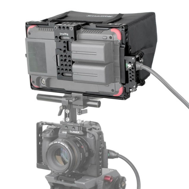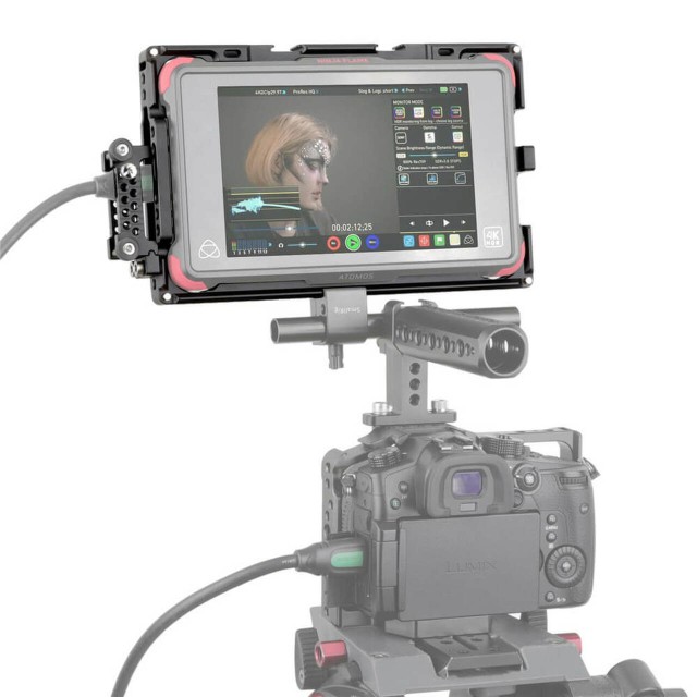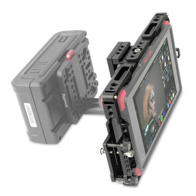 SMALLRIG Atomos Shogun a Ninja Assassin Monitor Cage 1788 je tvarovo prispôsobená ochranná klietka, ktorá umožňuje prístup k pripojeniu batérie a držiakov. Poskytuje dobrú ochranu pre kábel HDMI. A zariadenie proti vypnutiu, ktoré zabraňuje posunutiu karty SSD. Montáž ramenného popruhu vám poskytuje väčšie pohodlie počas snímania. Na každom konci hornej časti má lištu v štýle NATO, ktorá umožňuje pripevniť svorku SMALLRIG rail 1254 s 15 mm tyčou. Medzitým môžete pripojiť aj cold shoe SMALLRIG 1241, aby ste dosiahli pripojenie väčšieho množstva príslušenstva. Na spodnej strane je lišta typu NATO, ktorá umožňuje rýchle pripojenie komponentov NATO. Toto zariadenie je vybavené sústavou otvorov na montáž príslušenstva 1/4"-20 a 3/8"-16 pre rozšírené funkcie.