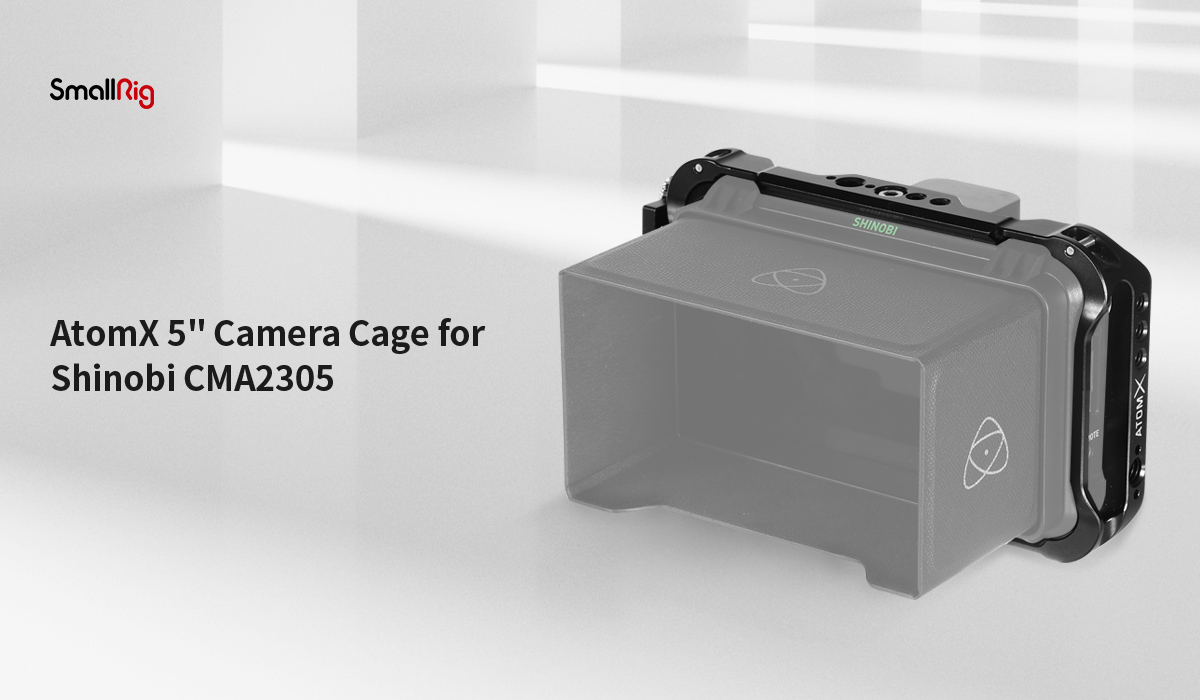 Klietka SmallRig AtomX 5" pre Shinobi CMA2305 bola navrhnutá tak, aby poskytovala dodatočnú ochrannú exoskeletovú konštrukciu pre monitor, s širokou škálou štandardných montážnych bodov. Klietka sa pripevňuje k monitoru pomocou dvoch skrutiek 1/4"-20 v hornej a dolnej časti. Po celom obvode klietky sa nachádza viacero otvorov 1/4"-20, 3/8"-16 na všetkých stranách, ako aj na zadnej strane monitora, čo poskytuje maximálnu flexibilitu pri montáži. Upevňovacie body ARRI sa nachádzajú na všetkých stranách a NATO lišty sú k dispozícii aj na hornej a spodnej strane, aby bolo možné použiť rad upevnení SmallRig. Klietka obsahuje jednu svorku na HDMI kábel, ktorá je kompatibilná s radom káblov Atomos a ďalších, aby chránila HDMI kábel a port. Je vybavená vyvýšenými upevňovacími bodmi na hornej a spodnej strane klietky pre použitie s krčnými popruhmi a pre uchytenie rámu Atomos Ninja V Sunhood.