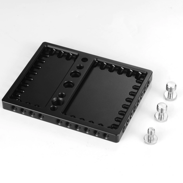 Základná doska SmallRig Baseplate pre kamery Kinefinity Terra/Mavo/Mavo LF MD2302 poskytuje kamerám série Kinefinity Terra a Mavo množstvo montážnych bodov 1/4" bez toho, aby pridávala na hmotnosti. Dodatočné montážne body možno použiť napríklad na pripevnenie 15 mm tyčovej podpery alebo zostavy V-Lock. Je to skvelý spôsob, ako zvýšiť flexibilitu bez toho, aby bolo potrebné pridať veľa montážnych prvkov. Základná doska sa bezpečne pripevňuje ku kamere pomocou dvoch 3/8" skrutiek a jednej 1/4" skrutky. Pod základnú dosku možno namontovať statívovú dosku.