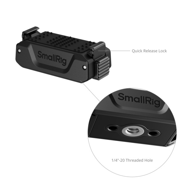 Obousměrný rýchloupínací adaptér SmallRig s otvorom so závitom 1/4"-20 poskytuje profesionálnym fotografom a kameramanom bezpečné, stabilné a rýchle upevnenie. Je určený pre akčné kamery DJI Osmo Nano a Osmo Action 6.