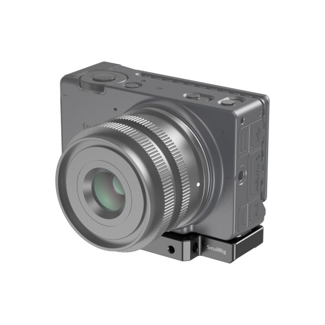 Spodná doska SmallRig pre fotoaparát Sigma fp APB2673 je navrhnutá tak, aby poskytovala úchyty pre príslušenstvo na spodnej strane fotoaparátu Sigma fp. Doska sa upevňuje na fotoaparát pomocou skrutky 1/4"-20 a polohovacieho kolíka na spodnej strane, ktorý zabraňuje skrúteniu.Je vybavená štyrmi závitmi 1/4"-20 pre príslušenstvo na spodnej strane na pripevnenie dosiek Arca alebo Manfrotto pre fotoaparáty, ako súAPU2389, APU2458 a 1280. Doska je vybavená dvoma závitmi M3 na zadnej strane, ktoré sú kompatibilné s LCD hľadáčikom Sigma LVF-11, a dodáva sa s dvoma závitmi M4 vpredu pre voliteľnýadaptér na podporu objektívu BSA2650. Každá strana je vybavená otvorom so závitom M3 na montážsúpravy hornej dosky APT2671(obsahuje hornú a spodnúdosku). Spodná časť je vybavená zabudovaným skrutkovačom s plochou hlavou na rýchlu inštaláciu.
