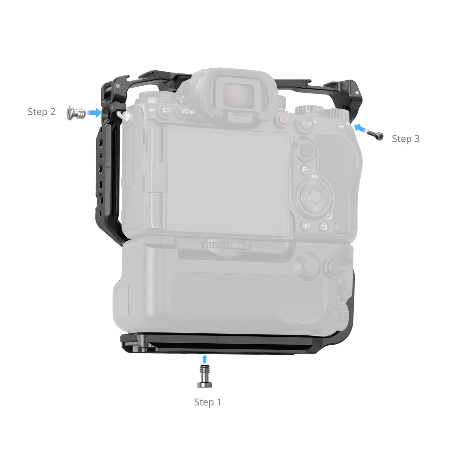 SmallRig Cage pre Alpha 1 II a Alpha 9 III s vertikálnym úchytom VG-C5 5908 je navrhnutý tak, aby poskytoval robustnú ochranu a univerzálne možnosti upevnenia pre váš fotoaparát. Je bezpečne upevnený pomocou skrutky 1/4"-20 v spodnej časti a dvoch skrutiek M2.5 po bokoch, s integrovanými silikónovými podložkami, ktoré zabraňujú poškriabaniu. Klietka zachováva plný prístup ku všetkým tlačidlám fotoaparátu, portom, slotom na karty a priestoru pre batériu.
