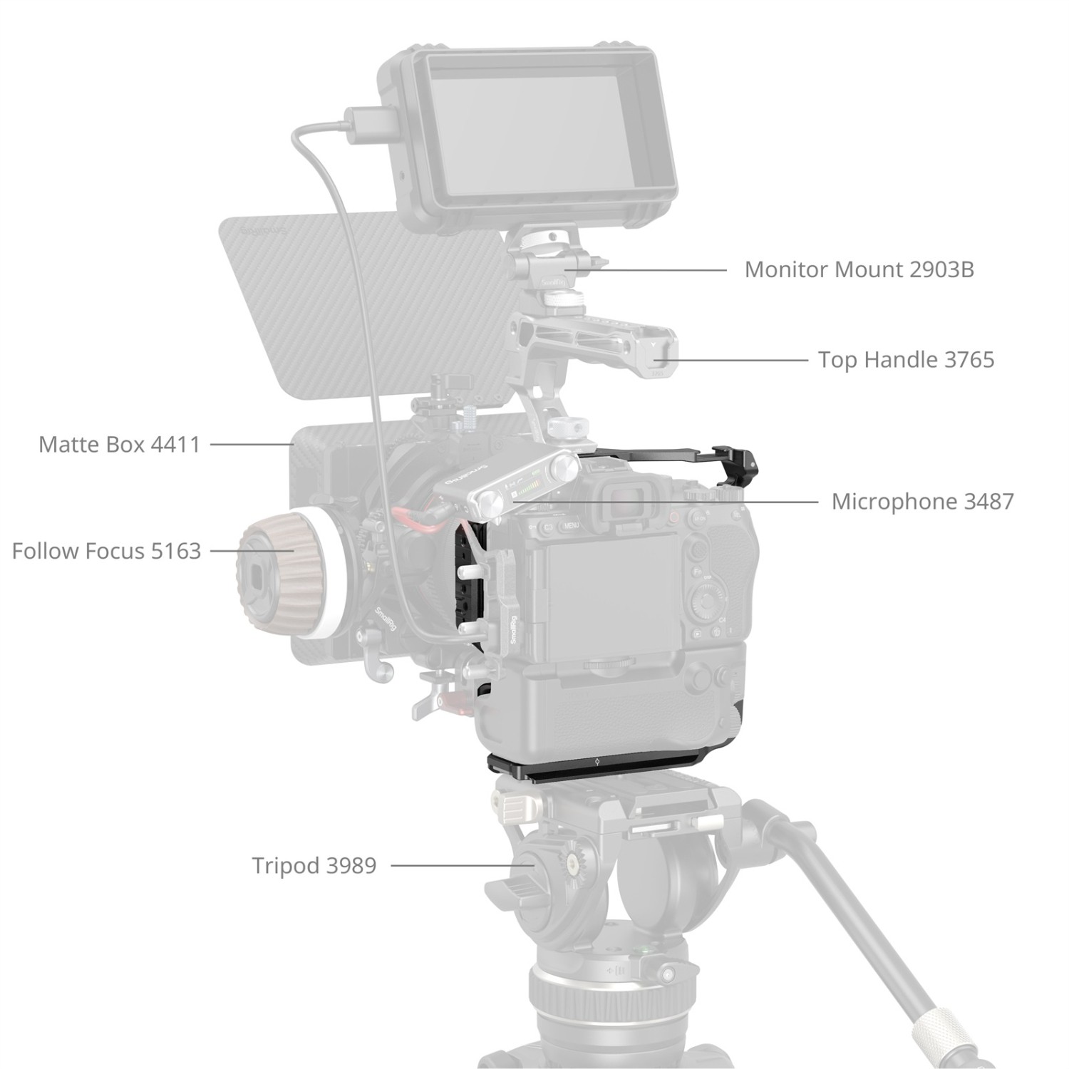 Klietka ponúka rozsiahle možnosti upevnenia, vrátane otvorov so závitom 1/4"-20 a 3/8"-16, ako aj lokalizačných otvorov ARRI 3/8"-16 na pripevnenie príslušenstva, ako sú horné rukoväte (ID 4757, 3765), bočné rukoväte (ID 4015, 4346), držiaky monitorov (ID 2903B, 2904B) a magických ramien (ID 3873). Dva vstavané držiaky na studené pätice umožňujú pripevnenie mikrofónov alebo videolampy (ID 4660).