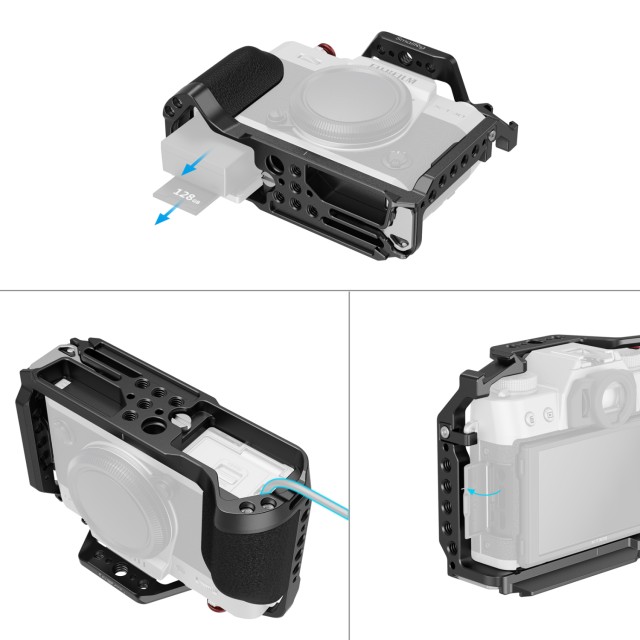 SmallRig Cage pre FUJIFILM X-T30 / X-T30 II / X-T30 III 5662 je navrhnutý tak, aby poskytoval komplexnú ochranu fotoaparátu a zároveň ponúkal univerzálne rozširujúce rozhrania. Bezpečne sa pripája pomocou spodného skrutku 1/4"-20 a ľavého skrutku M3, s integrovanými podložkami, ktoré zabraňujú poškriabaniu. Dôležité je, že klietka nebráni prístupu k slotom na karty fotoaparátu, obrazovke, priestoru pre batériu ani iným rozhraniam.