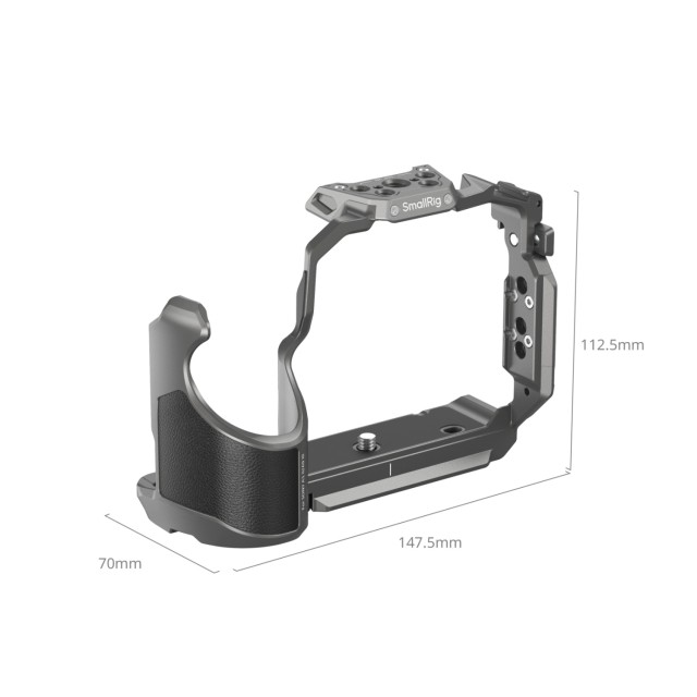 Trojbodová konštrukcia s ochranou proti vychýleniu pevne zabezpečuje fotoaparát pomocou dvoch skrutiek 1/4"-20 na spodnej a pravej strane spolu s polohovacím kolíkom M4 na spodnej strane, čím sa eliminuje potreba demontáže D-krúžkov. Zabudované podložky poskytujú všestrannú ochranu a zabraňujú poškriabaniu. Okrem toho výklopné dvierka v priestore na batérie zlepšujú úchop tým, že ponúkajú dodatočnú oporu pre malíček.