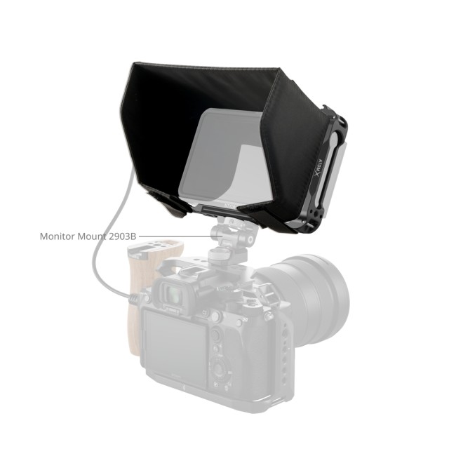1. Pri použití originálnej slnečnej clony zo série Atomos Ninja začnite inštaláciou slnečnej clony a následne klietky (ID CMA2209B).