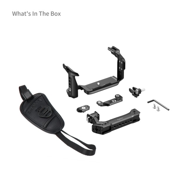 Klietka je vybavená viacerými otvormi so závitom 1/4"-20 a polohovacími otvormi na pripevnenie príslušenstva, ako sú bočné rukoväte (ID 5532) alebo magické ramená (ID 5308, 4900), ako aj polohovacími otvormi 3/8"-16 ARRI na montáž držiakov monitorov (ID 2903B) alebo horných rukovätí (ID 5252, 3765). Integrované držiaky na studené pätice umožňujú pripevnenie mikrofónov (kompatibilných s DJI MIC 2) alebo svetiel (ID 4660), zatiaľ čo spodná QD zásuvka podporuje QD ramenné popruhy (ID 4118B). Okrem toho vstavané otvory na popruhy umožňujú pripevnenie zápästných alebo ramenných popruhov (ID 4882, 5208). Vďaka týmto univerzálnym možnostiam upevnenia je možné na jednu kameru bez problémov pripevniť viacero príslušenstiev, čo je ideálne pre prispôsobiteľné profesionálne nastavenia.