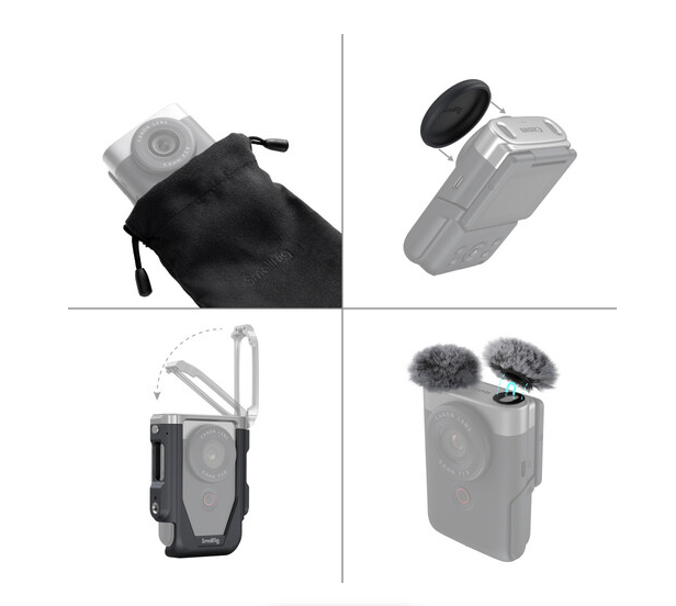Vylepšite svoj fotoaparát Canon PowerShot V10 pomocou súpravy SmallRig Cage Kit, ľahkej kompozitnej konštrukcie s hmotnosťou 42 g, ktorá obsahuje štyri závity 1/4"-20, dve studené pätice, dve opakovane použiteľné chlpové veterné clony (zníženie hluku vetra až o 20 dB), dvoma adaptérmi studenej pätice, silikónovým krytom objektívu a úložným vreckom – všetko navrhnuté pre okamžitú ochranu, vylepšený zvuk a rozšírené upevnenie v kompaktnom balení pripravenom na vlogovanie s 2-ročnou zárukou.