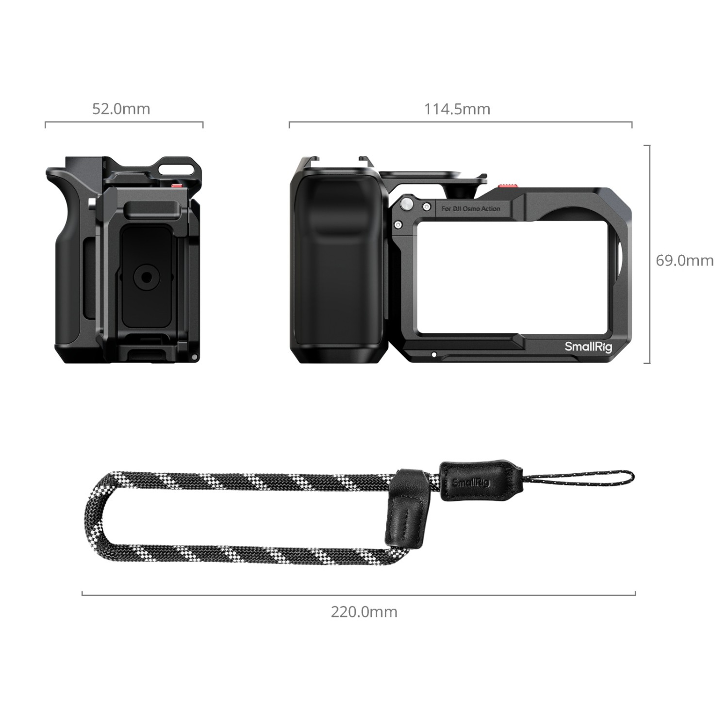 Súprava SmallRig Cage Kit pre DJI Osmo Action 5 Pro / 4 / 3 5602 je špeciálne navrhnutá pre fotografovanie na ulici s kamerami DJI Osmo Action 5 Pro / 4 / 3. Kompletná súprava obsahuje rám, rukoväť a zápästný remienok.