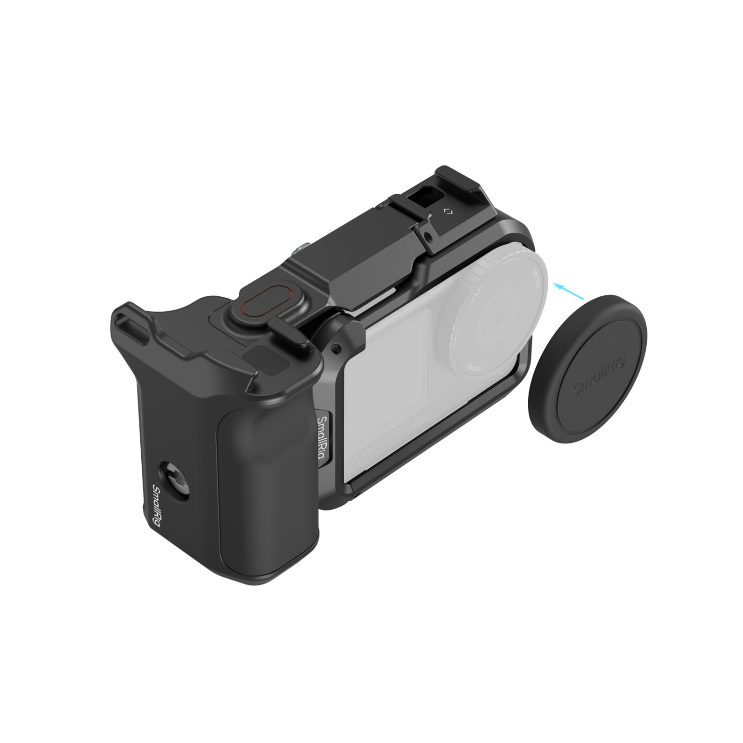 Konštrukcia klietky s otvoreným dnom umožňuje plný prístup k dvojitému rýchloupínadlu fotoaparátu, vďaka čomu je kompatibilná s obojsmerným rýchloupínadlom SmallRig (ID 5890) a obojsmerným rýchloupínadlom DJI.
