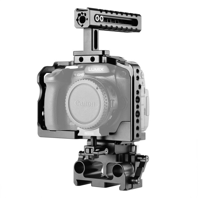 Klietka je prínosom pre fotoaparát Panasonic GH5 pri výrobe videa, pretože posilňuje ochranu a stabilitu a poskytuje viac možností upevnenia. Neblokuje žiadny prístup k slotu na kartu SD, priestoru na batériu a všetkým ovládacím prvkom fotoaparátu. Je vybavená studenou pätkou, koľajnicami NATO, otvormi so závitom 1/4''-20 a 3/8''-16 pre kutilské operácie. horná ergonomicky navrhnutá rukoväť sa vyznačuje nízkou hmotnosťou a dala by sa ľahko nastaviť doľava a doprava na vyváženie, pričom na skrutky sú pripravené dva šesťhranné kľúče. sada základnej dosky QR umožňuje výšku tyče 85 mm. Je kompatibilná s doskou Arri Dovetail QR. Otvory so závitom v spodnej časti sú kompatibilné s doskami Manfrotto a Vinten QR.