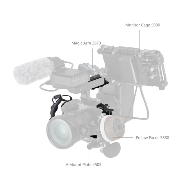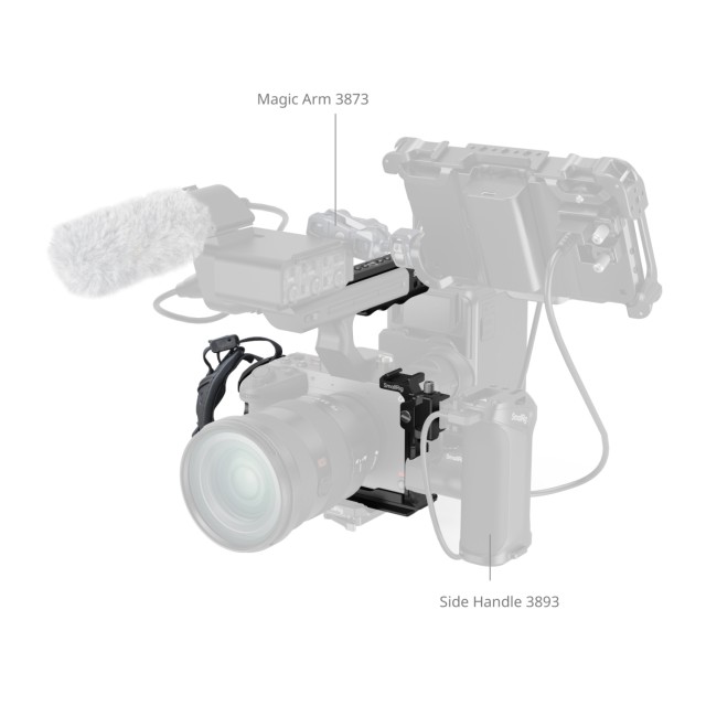 Odnímateľná lišta NATO (horná doska): Kompatibilná s hornou rukoväťou XLR od spoločnosti Sony alebo s otočnou hornou rukoväťou SmallRig (ID 4152) na bezproblémové ovládanie EVF