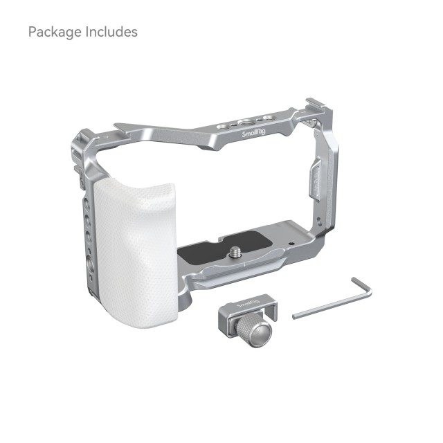 Súprava SmallRig Cage Kit pre Sony ZV-E1(Limited Edition) 4320 je určená na pripevnenie príslušenstva a ochranu kamery a portu HDMI. Obsahuje klietku so silikónovou rukoväťou a svorku na kábel HDMI. Klietka upevňuje fotoaparát pomocou jednej skrutky 1/4"-20 na spodnej strane a jedného bočného uzamykacieho adaptéra na oboch stranách, pričom ergonomická silikónová rukoväť ponúka pohodlné uchopenie. Svorka kábla HDMI sa pripevňuje k ľavej strane ZV-E1 pomocou skrutky 1/4"-20 s palcom a dvoch kolíkov proti skrúteniu, ktoré chránia port HDMI a zabezpečujú stabilný prenos.