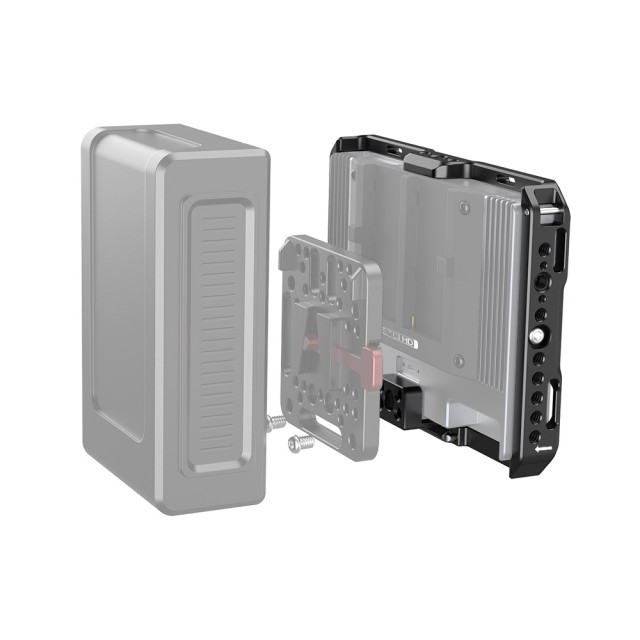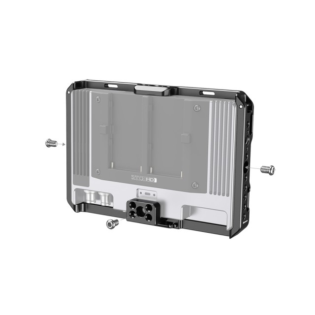 Klietka SmallRig so slnečnou clonou pre dotykový monitor SmallHD 702 CMS2684 je navrhnutá tak, aby poskytovala všestrannú ochranu a držiaky na príslušenstvo pre monitor. Klietka sa k monitoru pripevňuje pomocou troch skrutiek 1/4"-20, pričom jedna je na hornej a dolnej strane a jedna na zadnej strane. Vďaka viacerým závitom 1/4''-20 a ARRI 3/8''-16 umožňuje montáž príslušenstva, ako je napríklad rameno Magic Arm 2115, držiak monitora BSE2348 a držiak bezdrôtového prijímača 2107. Spodná časť je vybavená lištou NATO pre príslušenstvo kompatibilné so svorkami NATO na rýchle uvoľnenie nastavenia, ako je napríklad držiak monitora BSE2385. Súčasťou balenia je vyhradená slnečná clona, ktorá poskytuje ochranu pred oslnením pri snímaní v exteriéri. Zadná doska je kompatibilná s držiakom batérie V-Lock 1846 na pripevnenie batérie V Mount. Obsahuje viacero gumových podložiek vo vnútri, ktoré zabraňujú poškriabaniu monitora.