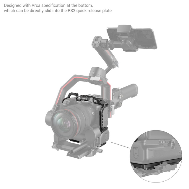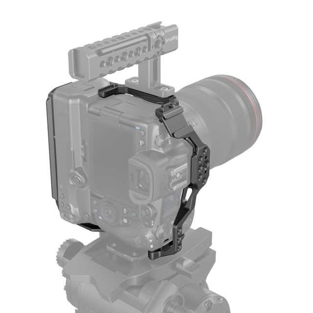Klec SmallRig pre fotoaparát EOS R5/R6 s batériovým gripom BG-R10 3464 chráni fotoaparát a zároveň uľahčuje natáčanie videa vďaka viacerým bodom na upevnenie príslušenstva. Klietka je upevnená jednou skrutkou v spodnej časti a otvormi pre ramenný popruh na oboch stranách, vďaka čomu je stabilná a neodstávajúca, a je vybavená vnútornými silikónovými vankúšikmi na ochranu fotoaparátu pred poškriabaním. Dodáva sa s otvormi so závitom 1/4''-20 a 3/8''-16 na upevnenie takéhoto príslušenstva, ako je bočná rukoväť 2093, horná rukoväť 1984 a magic arm s guľovou hlavou 2070, jeden horný polohovací otvor ARRI 3/8" -16 pre hornú rukoväť 2165 a jedna cold shoe, ktorá podporuje mikrofóny a LED svetlá. Predný koniec má otvor pre svorku na jednu tyč 3276 na pripojenie follow focusu. Do klietky sa zmestí aj popruh na ruku PAC2456, popruh na zápästie PSW2398 a popruh na rameno PSC2428. Jej zabudovaný kľúč v spodnej časti pomáha odstraňovať skrutky a integrovaná rýchloupínacia doštička Arca Swiss funguje so statívmi RS2 a statívmi.