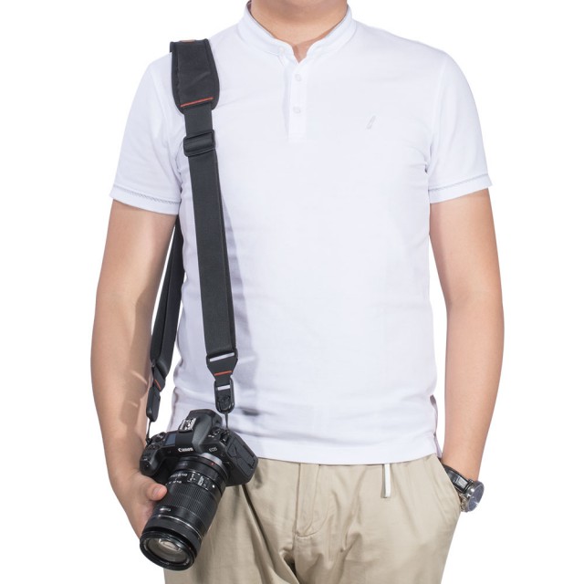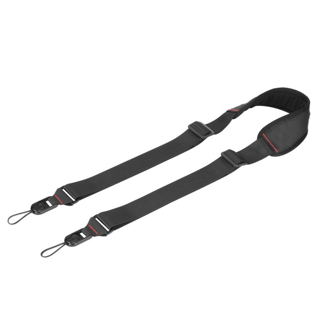 Dĺžka popruhu je nastaviteľná, maximálna dĺžka je 160 cm a minimálna dĺžka je 110 cm, aby vyhovovala ľuďom s rôznymi veľkosťami. Jedinečný systém Rapid Link umožňuje rýchle pripevnenie/odpojenie popruhu a poskytuje vášmu fotoaparátu bezpečnejší spôsob prenášania. Popruh sa dodáva s doštičkou QR, ktorá je kompatibilná so statívmi Arca-Swiss aj Manfrotto® RC2. Štyri otvory na šnúrky na štyroch rohoch možno použiť na pripevnenie konektorov Rapid Link Connector pre viac spôsobov prenášania fotoaparátu.